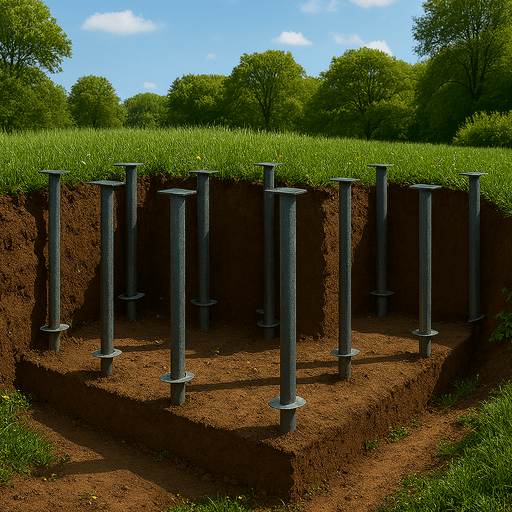 Свайно-винтовой фундамент — это надежное решение для небольших и больших объектов, особенно при сложных грунтах и высоком уровне грунтовых вод. Мы предлагаем строительство свайного фундамента под ключ с соблюдением всех технологических требований и СНиП.